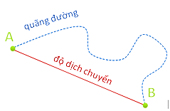 | Độ dịch chuyển là 1 đại lượng véc tơ, có thể nhận giá trị dương, âm hoặc bằng 0 | Trong khi quãng đường đi được là 1 đại lượng vô hướng, không âm |