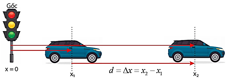- Độ dịch chuyển là một đại lượng vectơ (\(\vec{d}\) có:+ Điểm đặt (gốc): tại vị trí ban đầu.