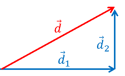 Tổng hợp độ dịch chuyển bằng cách tổng hợp vectơ.\(\vec{d}=\vec{d_1}+\vec{d_2}\)