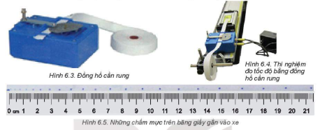 - Dử dụng một cần rung đều đặn khoảng 50 lần trong 1 giây và đánh dấu các chấm trên băng giấy gắn vào xe chuyển động. Đo khoảng cách giữa các dấu chấm xác định được quãng đường đi được của xe trong 0,02s.
