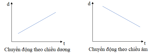 - Trong chuyển động thẳng đều, đồ thị độ dịch chuyển theo thời gian có dạng là đường thẳng.d = v.t