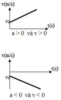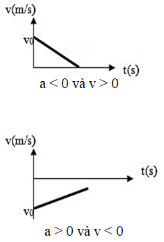 | Chuyển động thẳng nhanh dần đều. | Chuyển động thẳng chậm dần đều. |