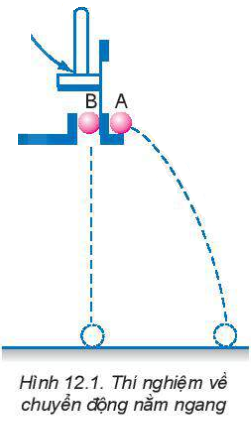 Dùng búa đập nhẹ thanh thép giữ bi B, thanh thép chuyển động thả bi B rơi tự do, đồng thời đẩy bi A theo phương nằm ngang khỏi giá đở với vận tốc v0.