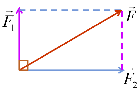 - Trường hợp đặc biệt, nếu \({\vec F_1} \bot {\vec F_2}\) (tức là α = 90°) thì \(F = \sqrt {F_1^2 + F_2^2} \)