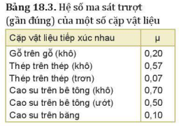 Với μ là hệ số ma sát trượt, phụ thuộc vào vật liệu và tình trạng của hai mặt tiếp xúc.N là áp lực