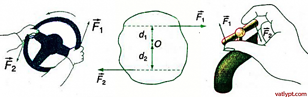 Moment ngẫu lực:\(M = F_1.d_1+F_2.d_2\)