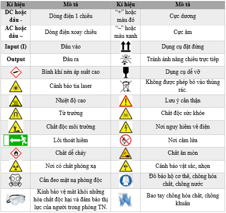 * Một số kí hiệu ghi trên các thiết bị TN và trong phòng TN
